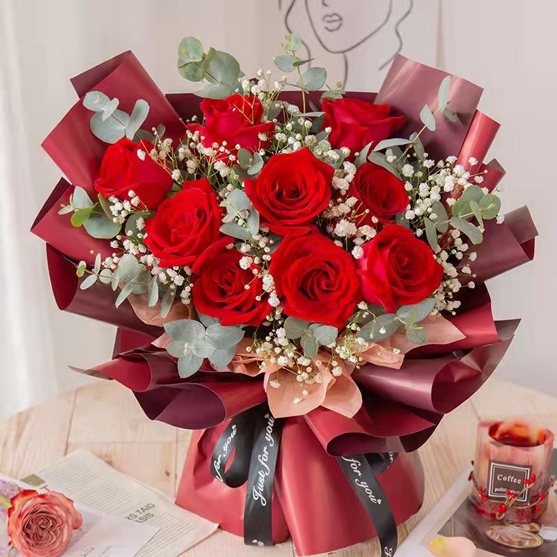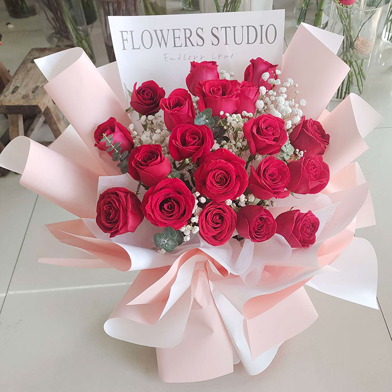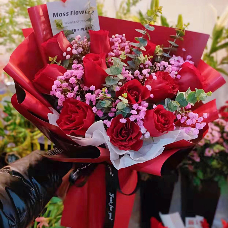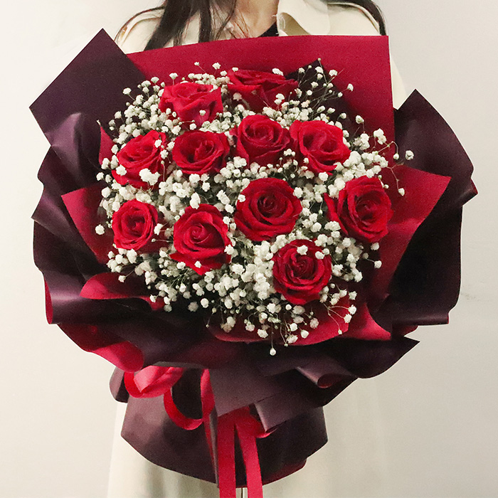 Enduring Love: 11 Scarlet Roses & Starry Gypsophila