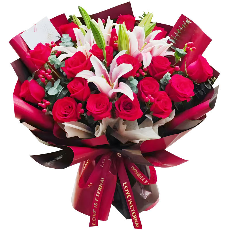 19 Red Roses & 5 Pink Lilies Bouquet - Eternal Harmony Gift