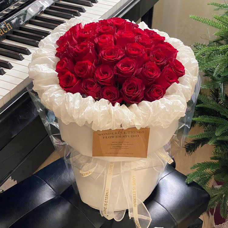 33 Red Roses Bouquet in Red Gift Wrap - Eternal Love Flowers to China